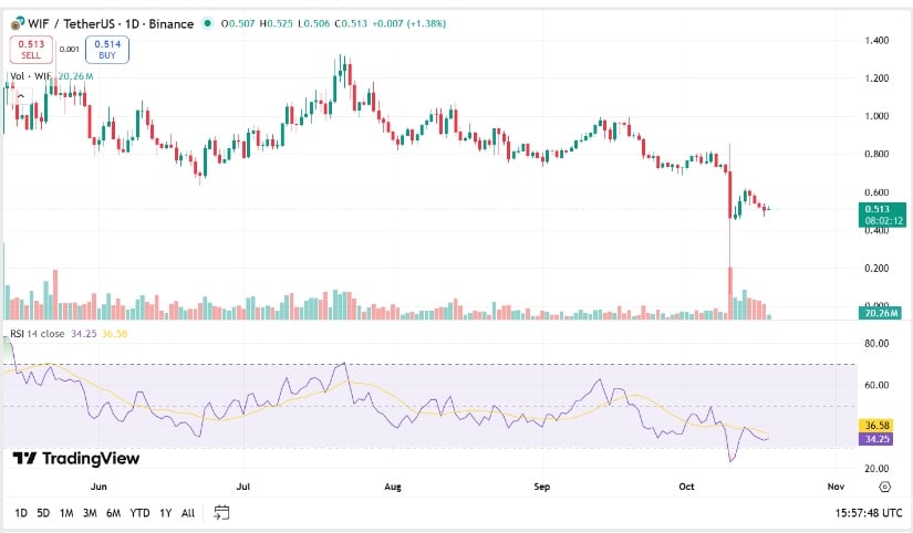 RSI и MACD, эти два стража импульса, намекают на стабилизацию — формирование основания после разрушений, вызванных продажами. Закрытие выше 20-дневной скользящей средней сигнализирует о возобновлении активности, однако Dogwifhat остается в осторой покое, существом привычки в своем узком диапазоне. 🐌🛡️